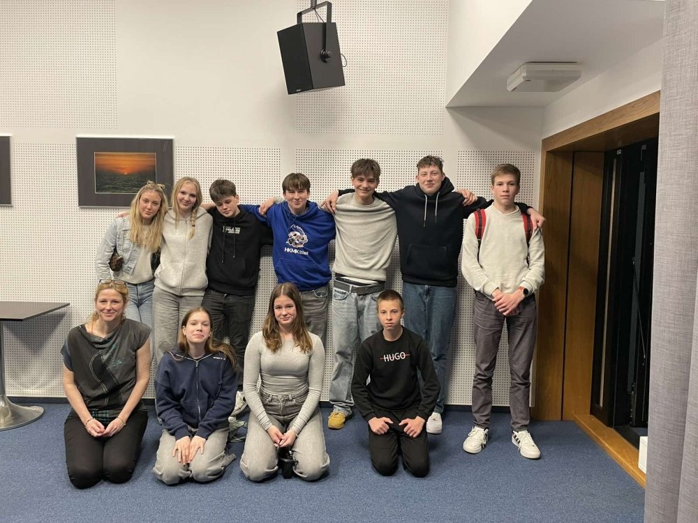 V soboto, 18. aprila 2026, so se devetošolci, ki obiskujejo izbirni predmet retorika, odpravili v Ljubljano. Na prvem programu Radia Slovenija so pripravili kontaktno oddajo v živo za mlade, Radio Hudo. V studiu so se pogovarjali o prostem času, pripravili pa so tudi ankete in intervjuje, ki so jih že posneli z učenci 1. in 3. razreda, z učitelji in z vrstniki. Glavna gostja je bila naša bivša učenka, sedaj pa pevka, Monika Avsenik. V rubriki Hudo športni in Kulturomat so besedo dobili naši učenci športniki in kulturniki.